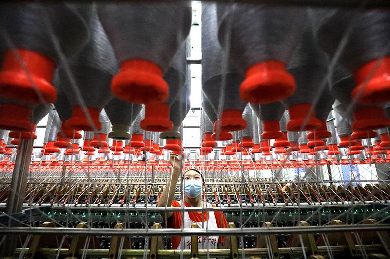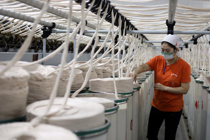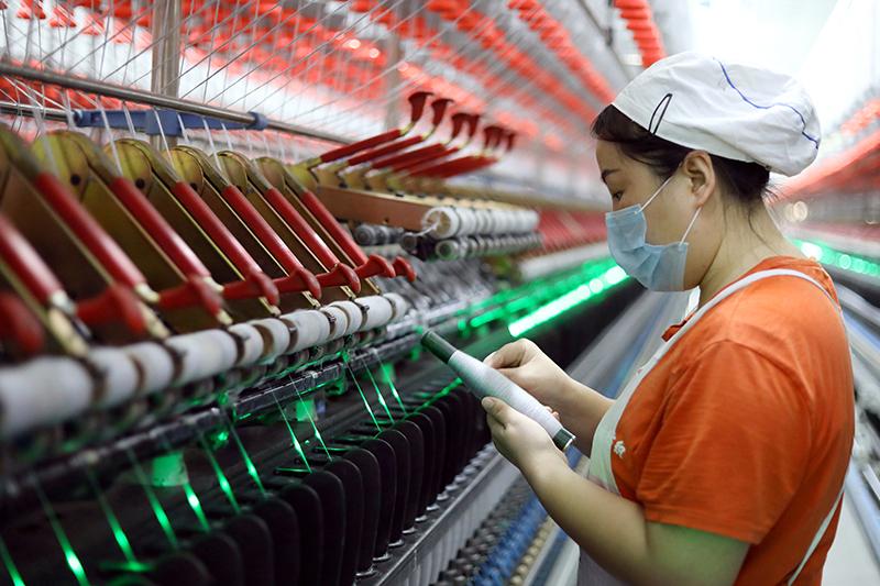 2月16日,工人在石家庄市藁城经济开发区一家化纤企业生产车间内工作。