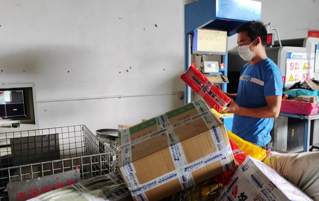 工作人员在日喀则市中通快递网点分拣包裹。新华社记者刘洲鹏 摄