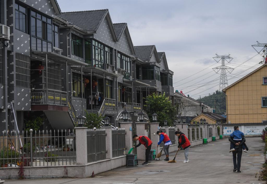 2020年11月26日,志愿者在浙江省湖州市吴兴区东林镇南山村的农民新居巡查垃圾分类情况。新华社记者 徐昱 摄