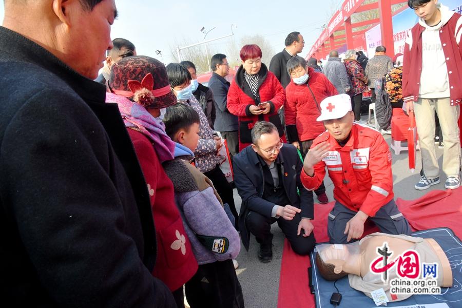 活动中,县红十字会开展了“救在身边”应急救护科普宣传,现场进行心肺复苏、海姆立克急救法等应急救护技能展示,讲解应对意外情形下的各种应急救护知识。