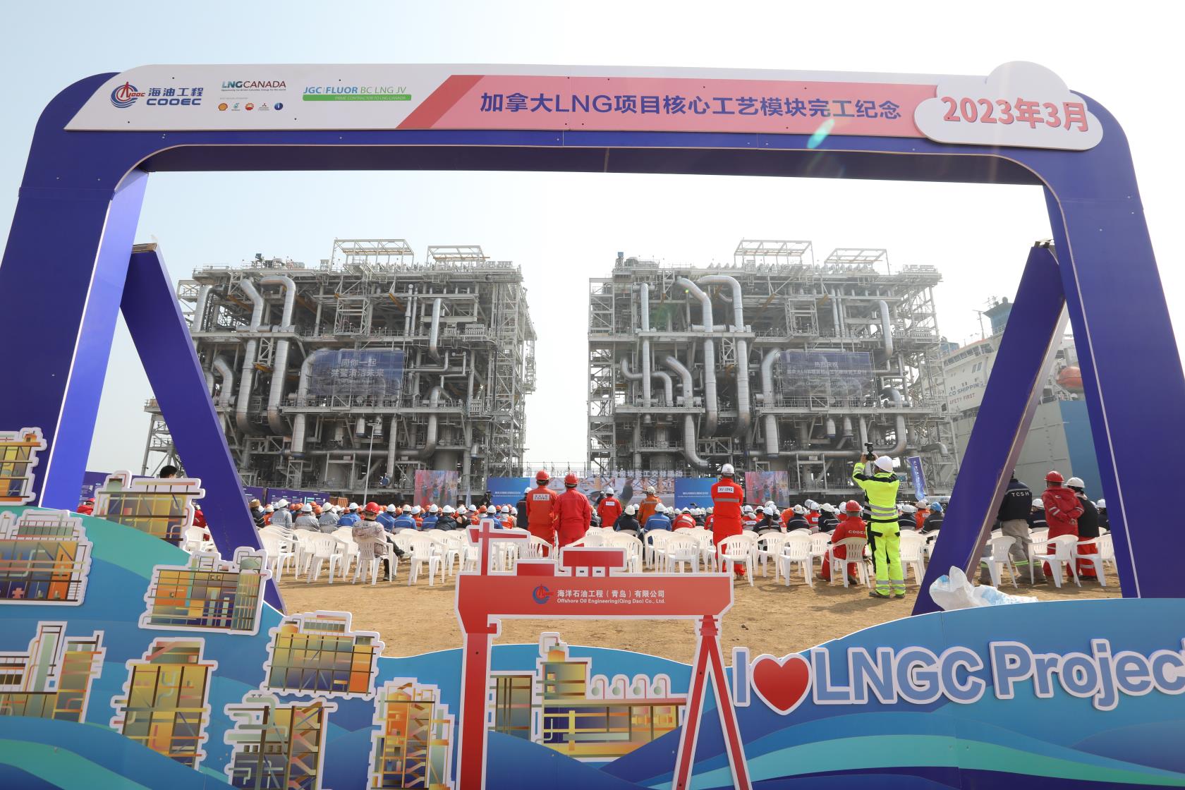 中国网3月9日讯 中国海油发布消息,由海洋石油工程股份有限公司(简称“海油工程”)承建的加拿大LNG(液化天然气)项目最后两个核心模块在青岛交付,至此全球首例一体化建造的LNG工厂35个模块全部交付,标志着我国超大型LNG模块化工厂一体化联合建造技术能力走在国际前列。