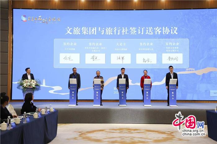 大会上,大足文创园与广州禾于文石科技有限公司、重庆雅俗共赏动漫制作有限公司、北美观照传媒有限公司、澜湄国际文化交流有限公司等投资企业签订合作协议;大足文旅集团与重庆行千里集团有限公司、重庆中国旅行社(集团)有限公司、快乐阳光旅行社、同程文化旅游发展有限公司等企业签订送客协议。
