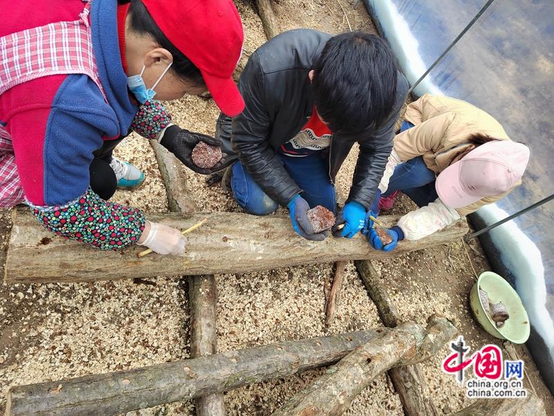 3月12日,在广元市朝天区两河口镇两河村侯家坝,只见一排排农膜覆盖的现代化食用菌种植大棚整齐排列,棚内一根根椴木摆放整齐,村民们正忙着切割、打孔、搬菌种……现场一派繁忙景象。