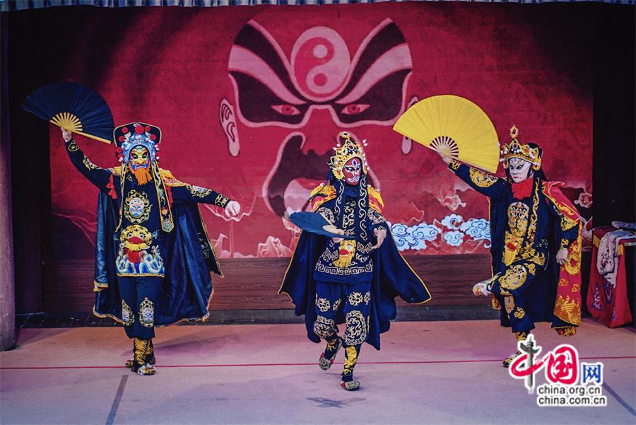 老街的另一头,古老的大戏楼里,咿咿呀呀的川剧正在上演,古镇人对川剧的热爱已生活化,看戏是古镇居民每天的休闲方式,偌大的院落,人们围坐桌椅,一盏茶一出戏,古老的戏台上,扮相精美的角儿们投入的演出中,铿锵的鼓点,高亢的唱腔穿透戏楼,在古镇上空回荡,变脸是川剧中的经典,是国粹,在台上的演员突然出现在观众间,互动中精妙的脸部变化,赢得全场惊呼,将演出推向高潮。
