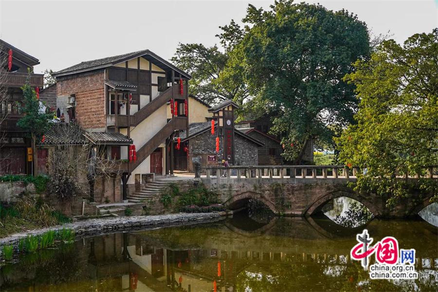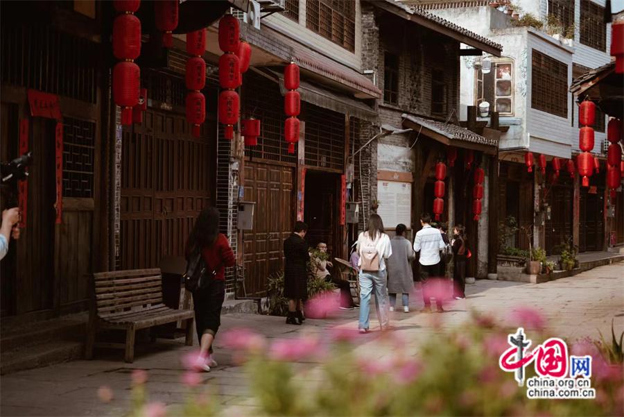 在雍溪里,穿过鸡鸣犬吠的村落与阡陌纵横的田野,一片油菜花海的尽头,是小巧精致的雍溪古镇,说它小,因为古镇街巷全长仅637米,说它精致,因为在这条短短几百米的古老街巷,却是酒肆酒厂、商铺、茶馆林立;典型的川东穿斗式传统民居中矗立着一庙一戏楼。