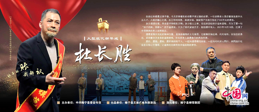 近日,由江苏省睢宁县新时代文明实践中心、中共睢宁县委宣传部主办,睢宁县文体广电和旅游局出品,睢宁县柳琴剧团出演,以全国诚实守信道德模范杜长胜的事迹为原型,国家一级演员孟浩和周小翠担纲主演的大型现代柳琴戏《杜长胜》在睢宁县文化艺术中心演艺馆成功首演。谢幕时,伴随着观众们经久不息、热烈雷动的掌声,全体主创和演员们登台谢幕。在现场观看的杜长胜的孙子杜勇激动万分,大声地喊出了“爷爷没死,还活着!”,同在现场观看的睢宁县睢城实验小学40多名小学生也跟着喊起来……