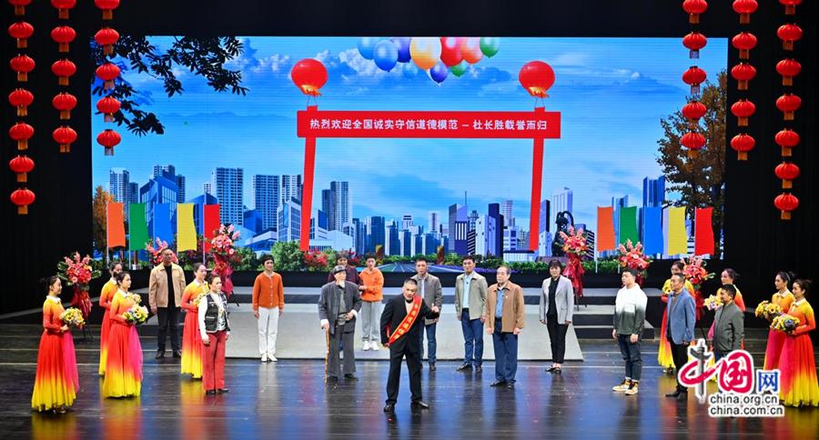 “柳琴戏是睢宁地方剧种,我们在创作中又融入了睢宁特有的落子舞,这一次我们的演员演的就是自己的身边人,讲的是诚信的故事。优美的曲调,真情诠释了农民对‘诚信’坚守,欢快的舞步体现农民的喜怒哀乐。”中国戏剧家协会会员、一级导演王咸俊在现场观看演出后感慨道,“睢宁古有‘季札挂剑’,今有‘第五届全国诚实守信道德模范’杜长胜,诚信文化在睢宁历经弥新。”