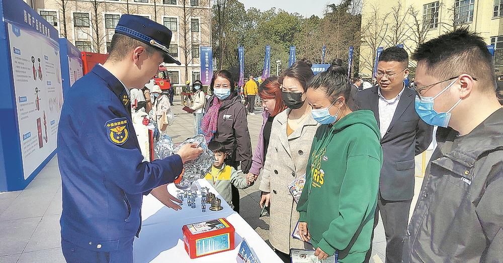 消防员们在现场通过实验、讲解等方式教市民如何分辨真假消防器材。只见消防员们把几个喷淋洒水喷头安装在一个水管架上,用火逐一烧过几个辔头,两个真喷头瞬间破裂喷水,而另外两个假喷头则纹丝不动。“喷淋系统是火灾初期的灭火利器,这些洒水喷头在外观上没有任何区别,一旦发生火灾就会有天壤之别。”四川省消防救援总队火调技术处副处长郑效桥向记者介绍,一般情况下温度超过68摄氏度时真喷头中的玻璃球就会自动爆裂,但如果使用的是假货,根本就起不到喷水灭火的作用。