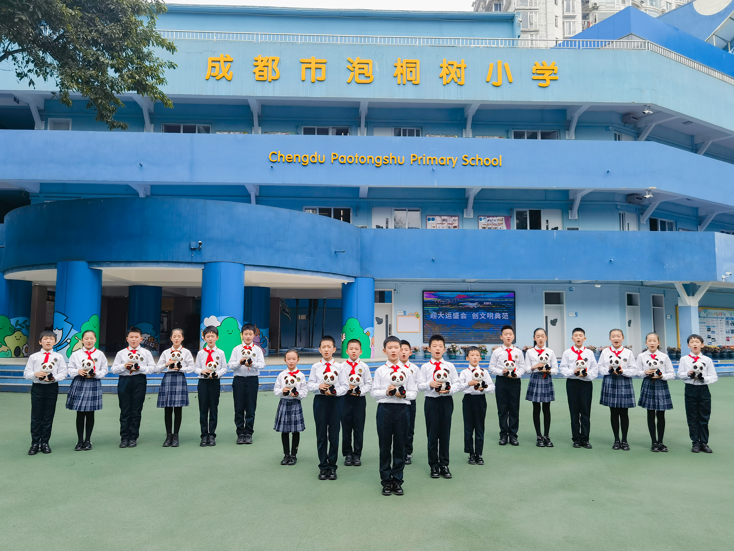 与此同时,千里之外的成都,来自成都市泡桐树小学的学生,也手持成都大运会吉祥物“蓉宝”,带着微笑,同步表达了对北京冬奥精神的接续,以及对成都大运会的满心期待。