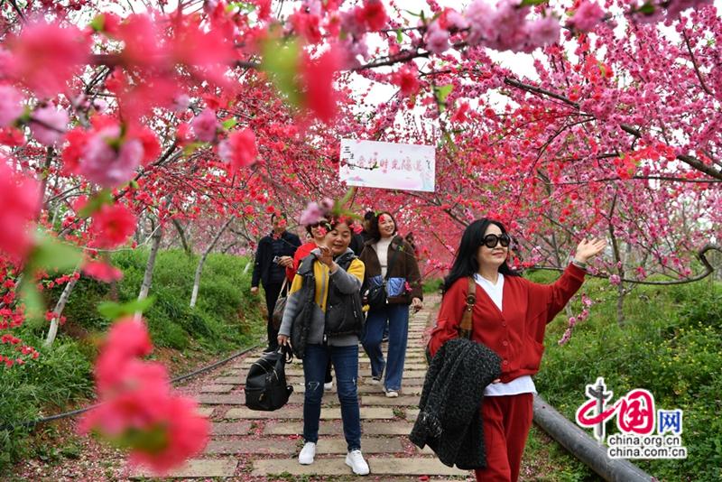 十里道路十里花,千亩桃园披红绸,仿佛是天上落下的朝霞。
