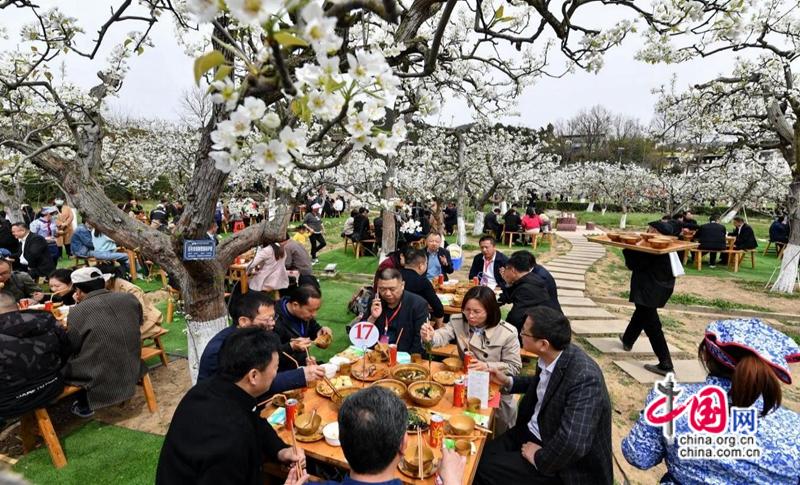 在梨树下吃“十大碗”,空气是甜的、菜肴是香的、人情是浓的。