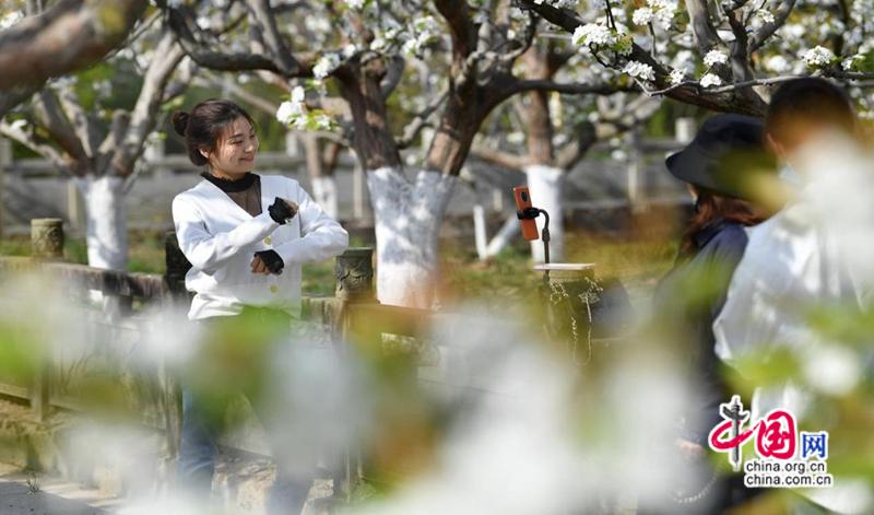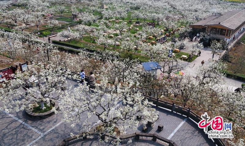 上万棵梨树花开,每个角度都是一首诗。徜徉在梨花里,目及之处,皆为风景。