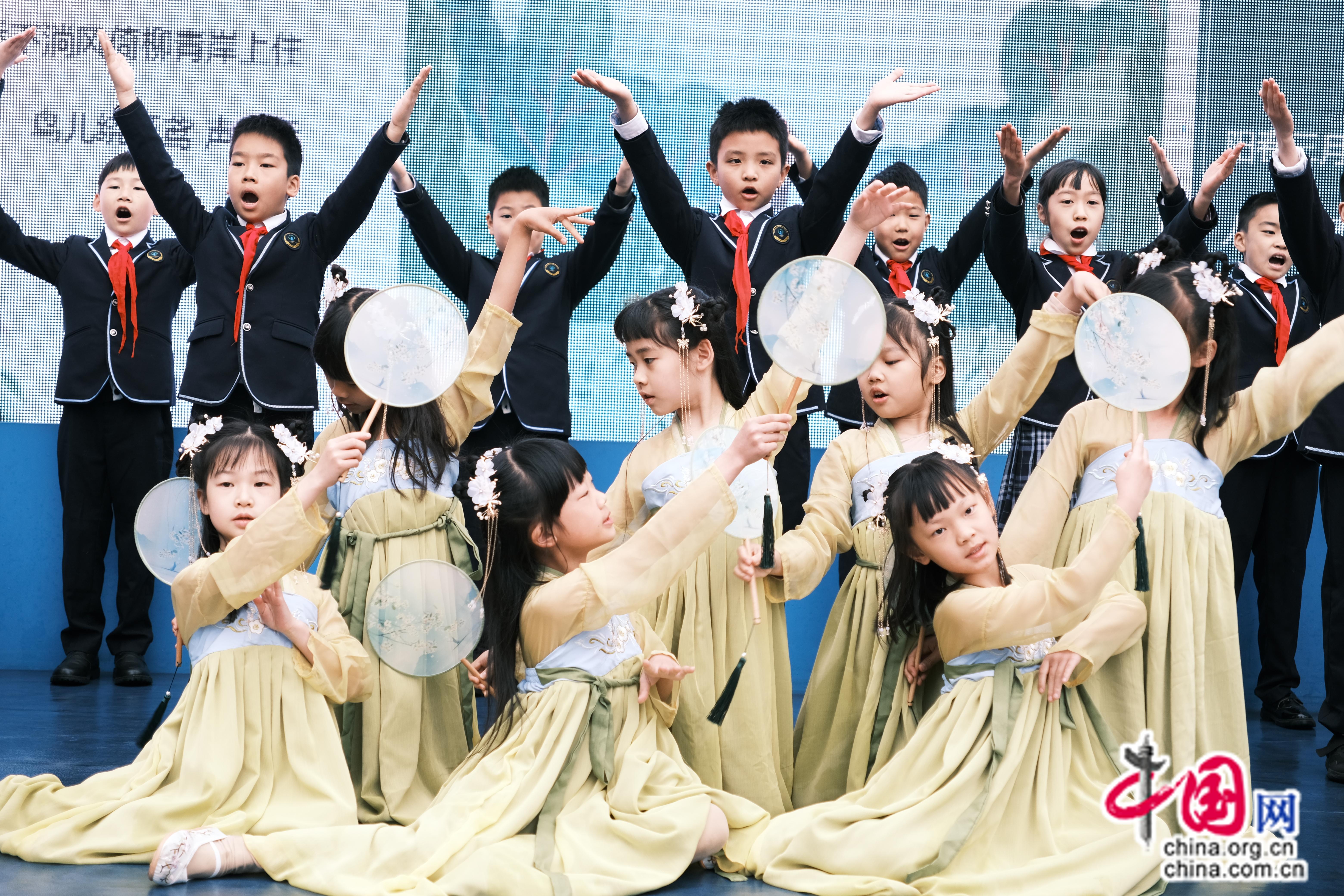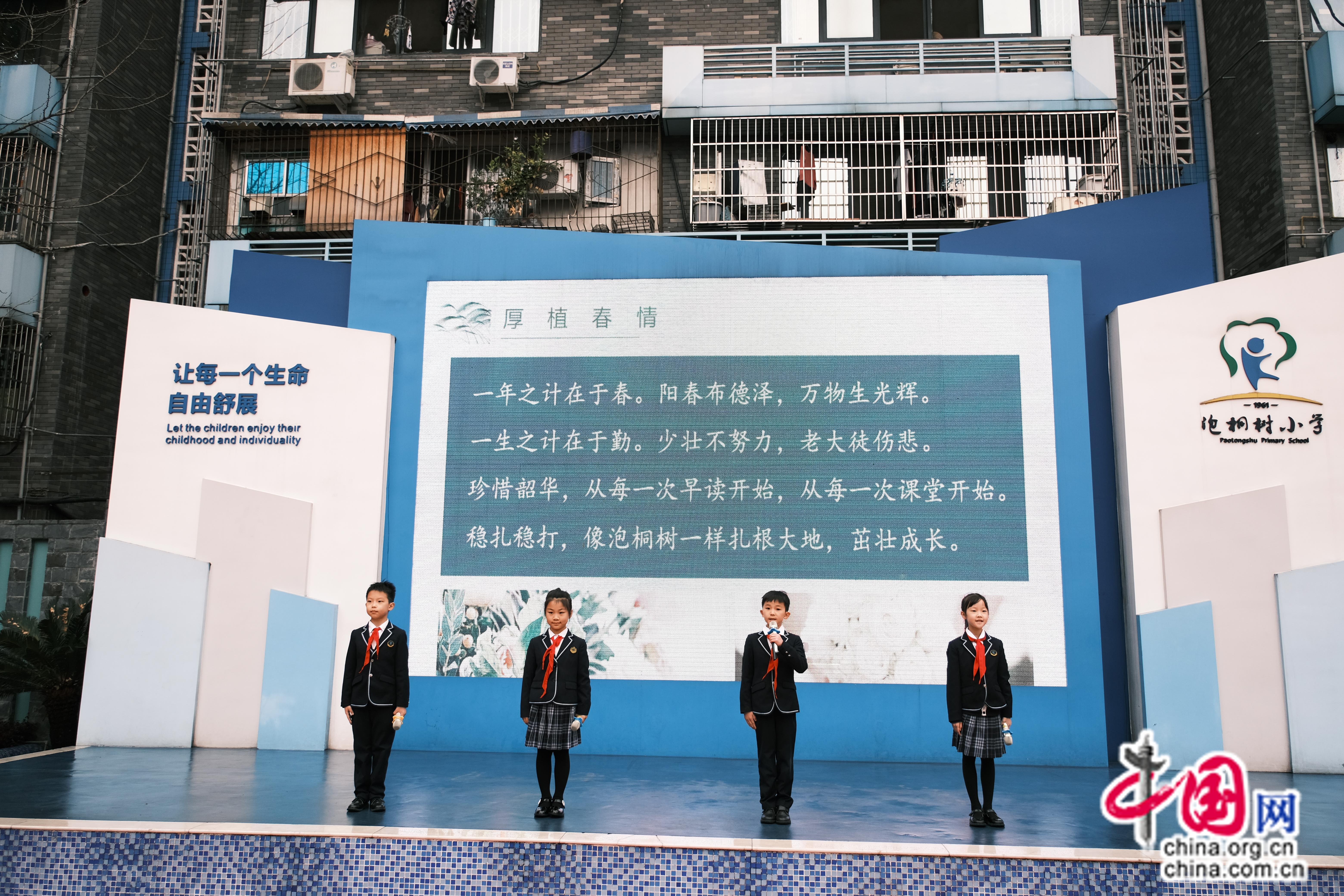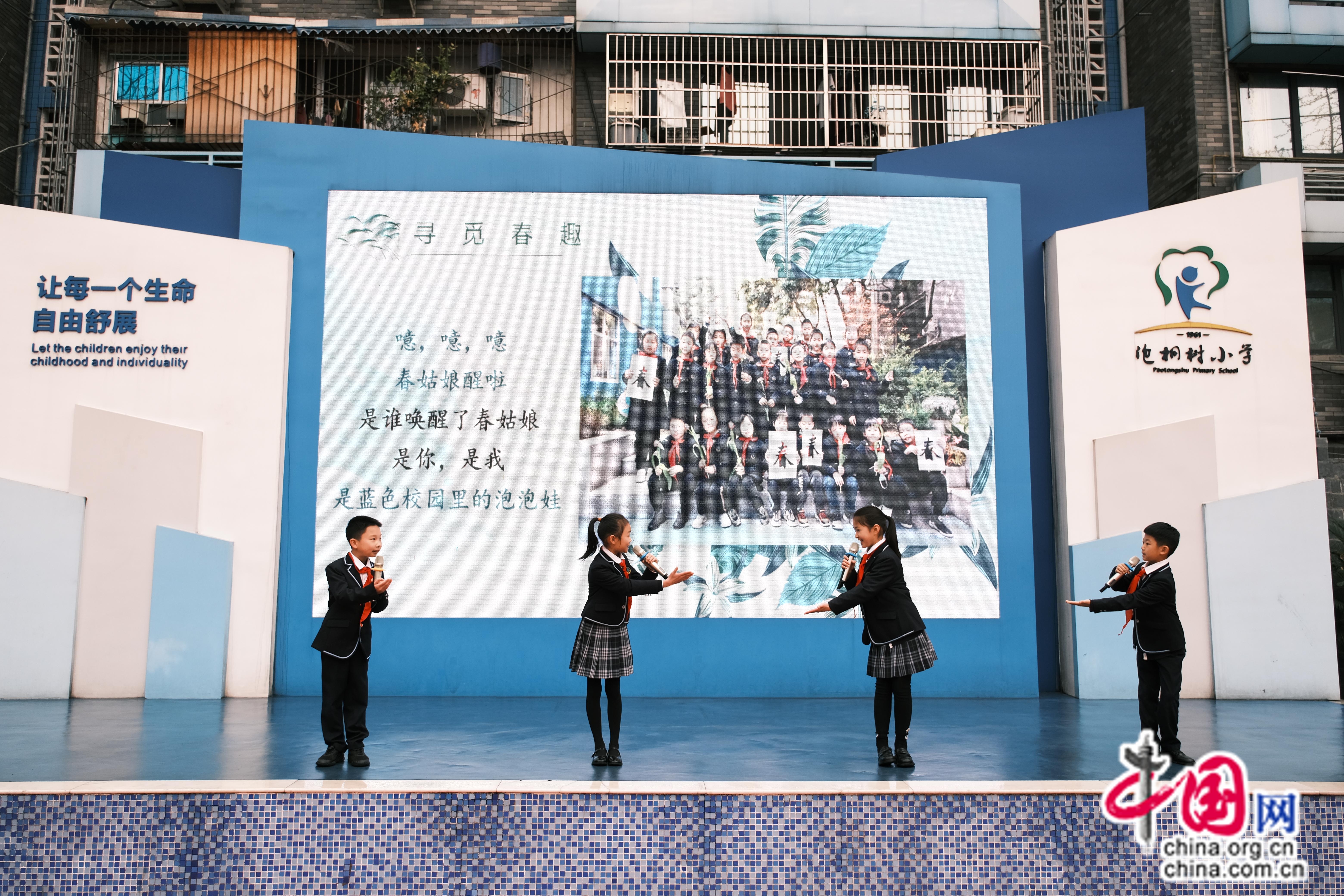 百草园芳草萋萋,水生池春水荡漾,诗情画意的校园需要大家的共同守护。随后,中队带来的歌舞表演《春三月》,旨在倡议所有的泡泡娃们一起做美丽校园的建设者、守卫者,迎大运盛会、创文明典范,用文明行为为泡小增光添彩,像泡桐树一样茁壮成长。