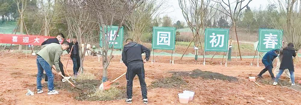 “再来一铲土,压实一点!”“来来来,大家来合个影。”上午9时,世园会主会场绛溪南组团人声鼎沸。扶树填土、踩实修整、堆起围堰、提桶浇水……记者在现场看到,来自成都东部新区各局(部),以及部分镇(街道)的工作人员分工协作、默契配合,一排排树苗点缀春色,增添绿意。
