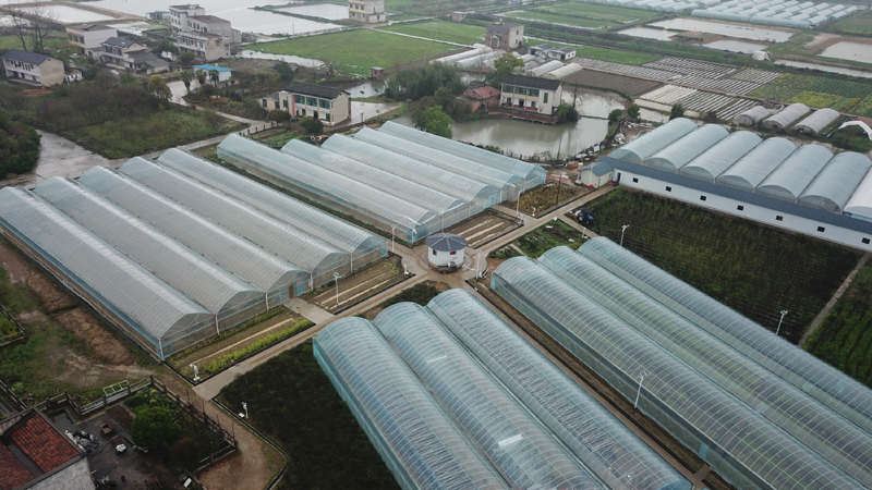 这是3月23日拍摄的位于湘潭市雨湖区姜畲镇青亭村的多功能育秧大棚(无人机照片)。