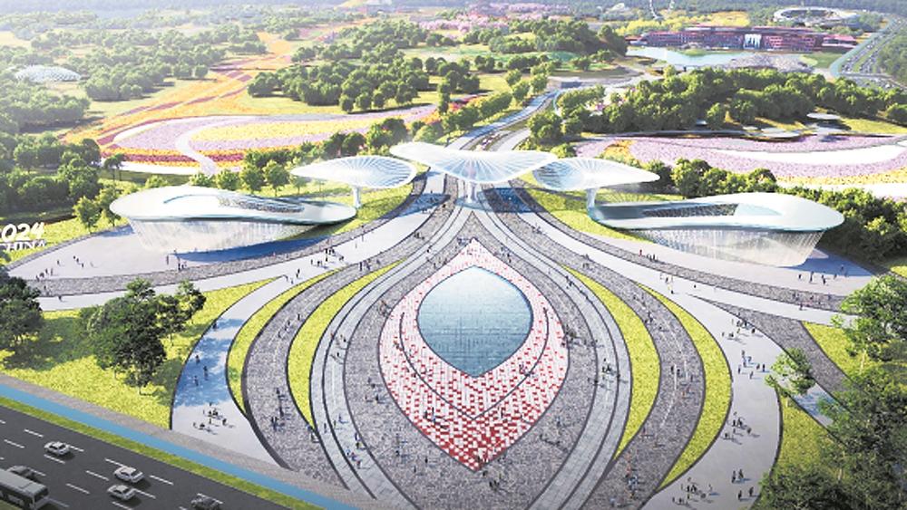 此次封顶的东侧场馆为游客进入世园会的入口,配有售票、游客服务、急救等功能和办公管理用房及多功能厅;西侧场馆为世园会出口,设有问询导览、特许品商店和餐饮空间。项目主体封顶后,将转入幕墙及内部装修施工,建筑意境和设计功能将逐步呈现。