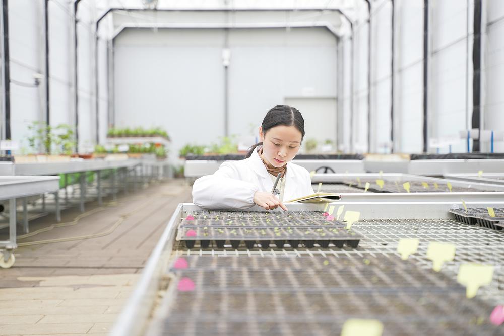 目前,太空种子统一栽培在市植物园内的智能温棚中。唐圣雯指着其中的遮阳网说,“遮阳网主要根据当天的天气情况决定是否展开,同时我们还将实时通过排风设备和增湿设备做好通风和控湿处理。”