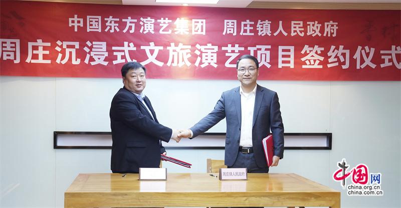 周庄历史悠久、环境优美、文旅资源丰富,中国东方演艺集团是国家级演艺文化集团,其前身——中央歌舞团、与中国轻音乐团,是最负盛名的国家级艺术院团,创作演出了诸如舞蹈诗剧《只此青绿》等深受中外观众喜爱的优秀艺术作品。