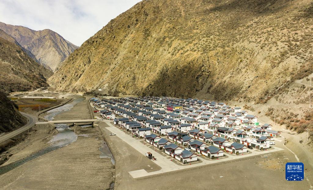 这是西藏山南隆子县斗玉珞巴民族乡绕让搬迁安置点(2023年2月15日摄,无人机照片)。新华社记者 晋美多吉 摄