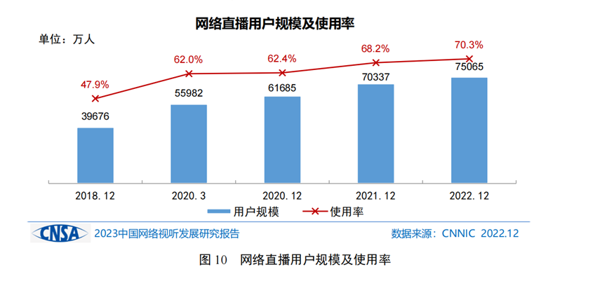 四、网络直播用户规模达7.51亿,成为网络视听第二大应用