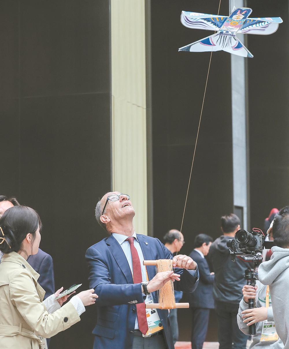 国际大体联代理主席雷诺·艾德体验放风筝