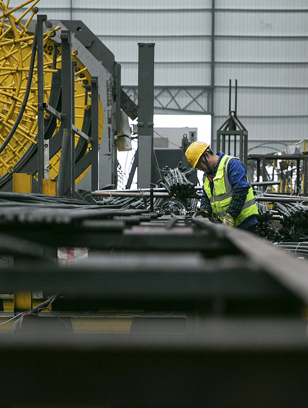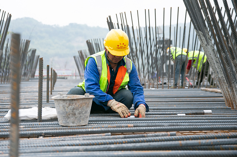 3月29日,施工人员在重庆市涪陵区渝万高铁项目部钢筋智造配送中心作业。