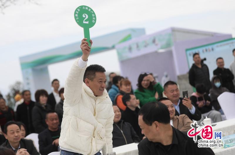推介会现场,为2023年青川县“七佛贡茶”手工茶技能竞赛获奖选手颁奖,发布“七佛贡茶”古树茶产品,并开展“七佛贡茶”古树茶产品竞拍活动。(郭自慧 鄢怀林)