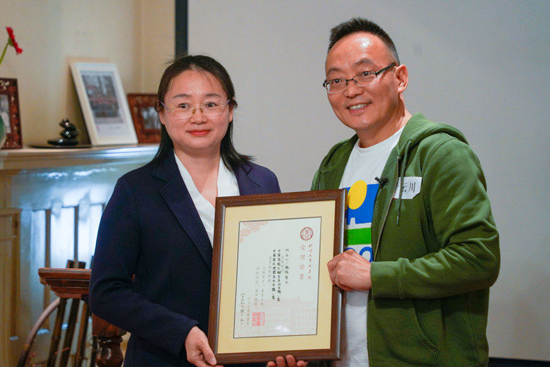 ▲北京大学图书馆党委副书记周春霞(左)向叶云川颁发捐赠证书