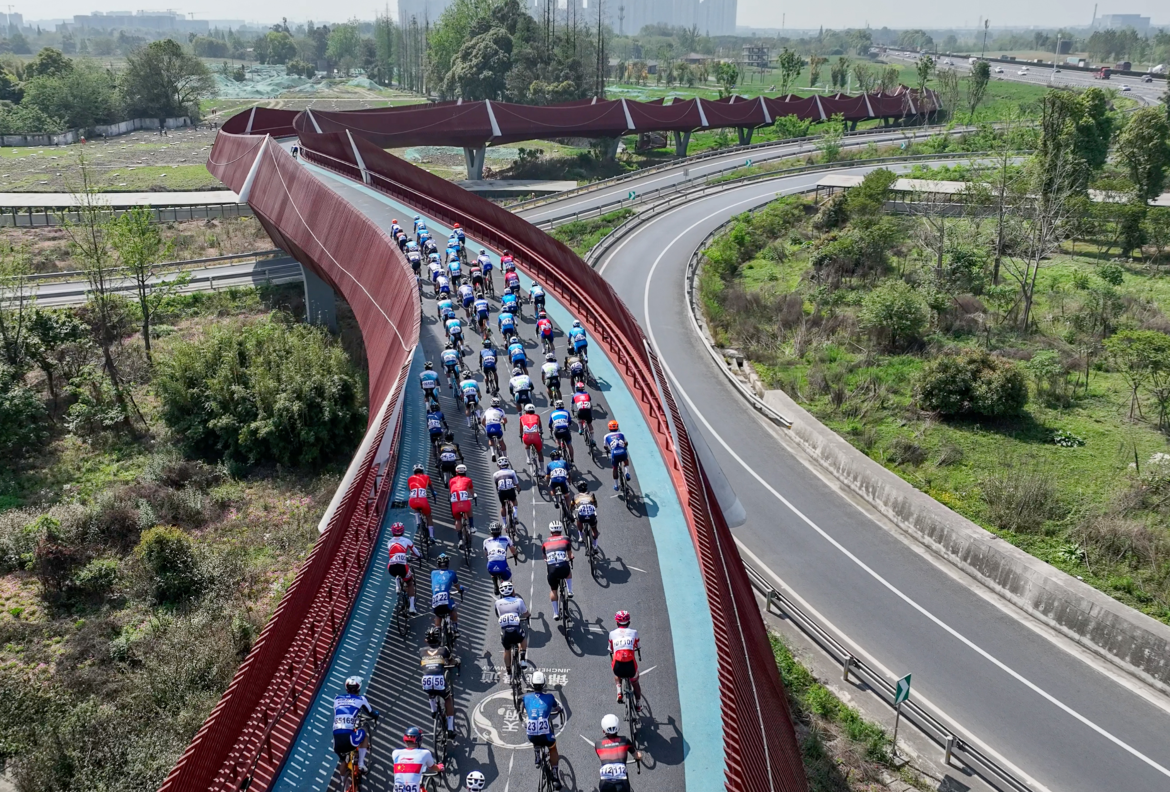 成都第31届世界大学生夏季运动会特许商品、非遗糖画、天府绿道文创……集美食、文化等方面的嘉年华活动使桂溪生态公园西区热闹非凡。4月15日,2023中国·成都天府绿道国际自行车赛在成都桂溪生态公园正式拉开帷幕,吸引了国内外共18支高水平队伍117名队员参赛,不仅如此,自行车奥运冠军宫金杰也来到现场,分享个人经历和自行车知识,为赛事的火热开赛再添一把火。