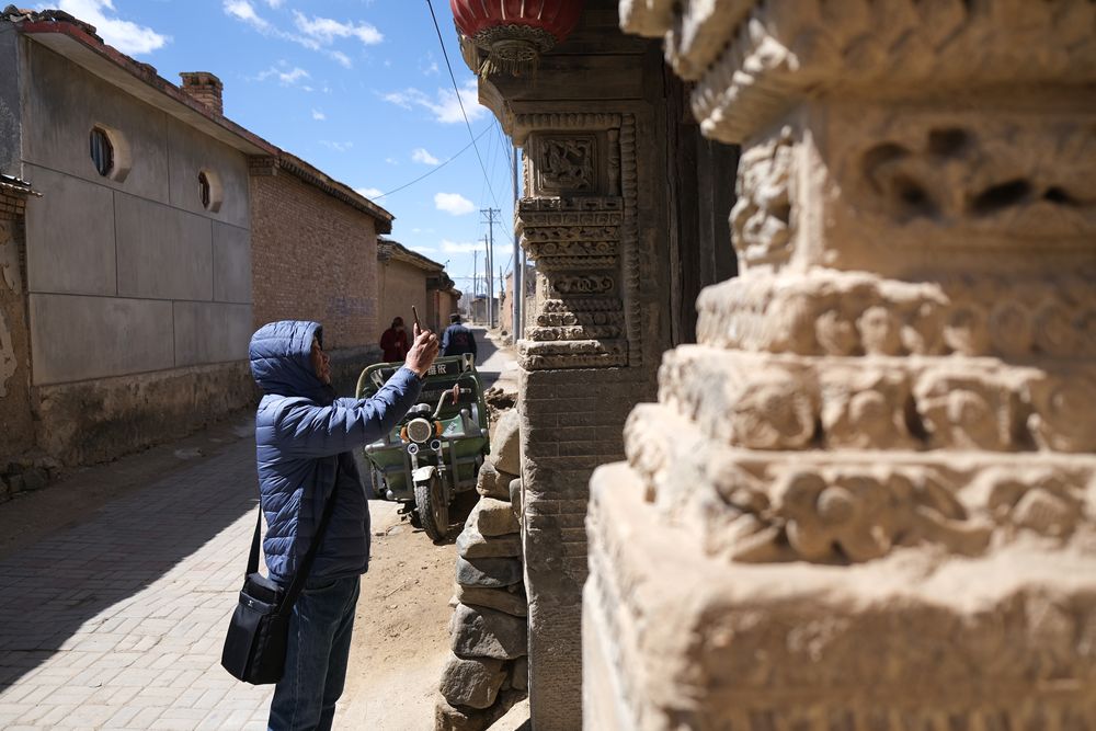 游客在山西省大同市天镇县新平堡古村落内游览拍照(2023年4月7日摄)。新华社记者 唐诗凝 摄