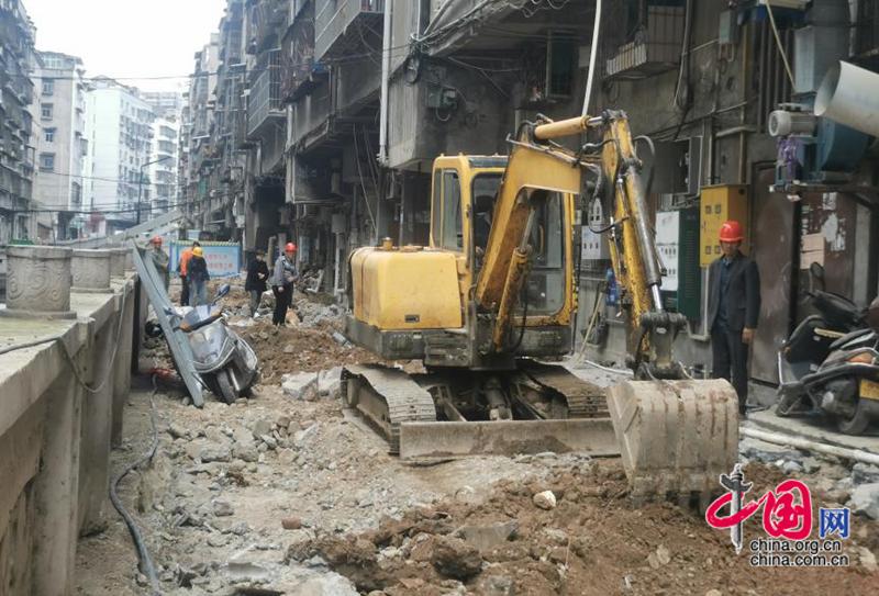 在老旧小区改造项目祥和大院至友好医院九曲溪段施工现场,工人们正进行管沟开挖、场地平整作业,现场挖掘机轰鸣。九曲溪段全长1.8公里,建设内容包括雨污水管网改造及道路、景观、绿化等配套设施建设,目前该项目已完成过半。