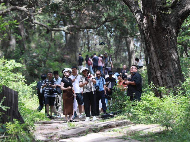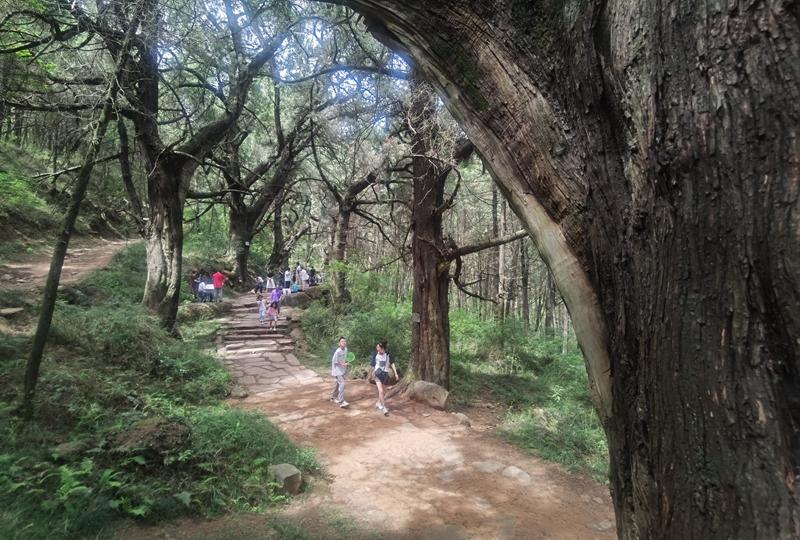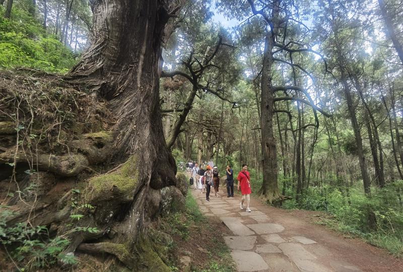 缓缓走在青石路面上,途中,一棵接一棵的参天古柏,虬枝招展,浓荫遮天,间或有阳光从树梢洒下来,明晃晃地,落在古蜀道的青石板上,让人有种穿越时空的恍惚,似乎看到了遥远的秦汉时代。(郭自慧 燕巧 苗志勇)