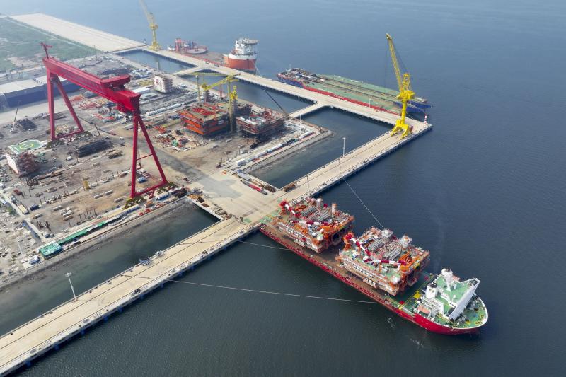 渤海首个千亿方大气田I期项目海上平台在工厂建造完工