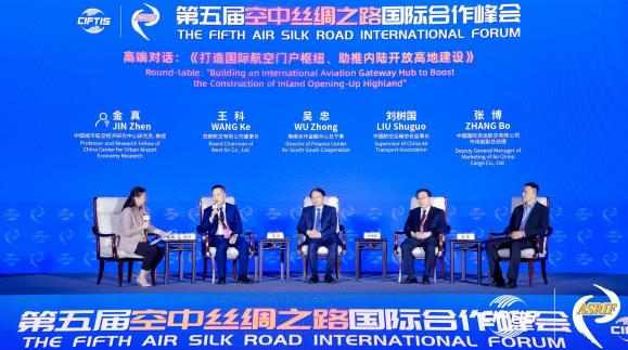 在《打造国际航空门户枢纽、助推内陆开放高地建设》高端对话环节,西部航空有限公司董事长王科、南南合作金融中心总干事吴忠、中国航空运输协会监事长刘树国、中国国际货运航空有限公司市场部副总经理张博展开高端对话,为重庆打造国际航空门户枢纽出谋划策。