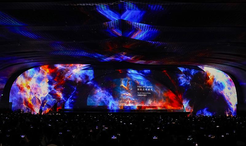 10月18日,在第81届世界科幻大会开幕式上,演员在表演《揽星》科幻秀。