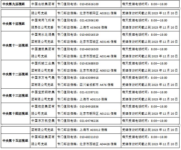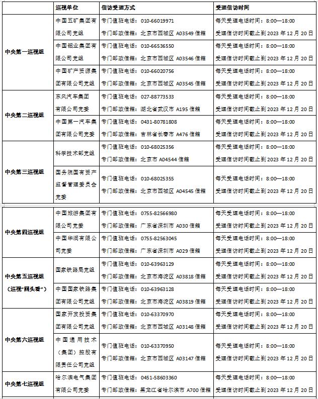 截至目前,中央巡视组已进驻24家单位,并公布了信访联系方式。