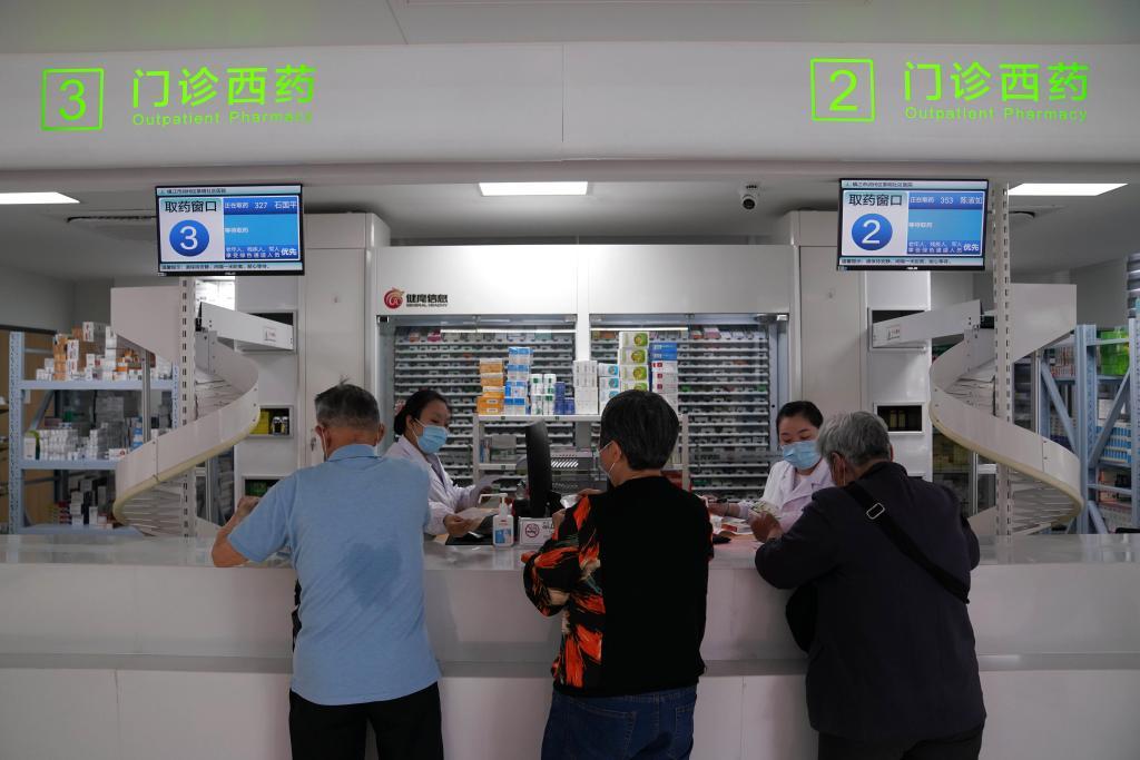 5月16日,人们在江苏省镇江市润州区黎明社区卫生服务中心门诊取药。新华社记者 马宁 摄