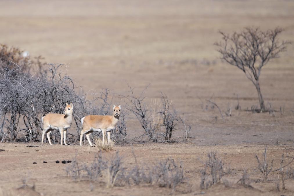 1月24日,青海省海北藏族自治州刚察县哈尔盖镇境内的草原上的普氏原羚。新华社记者 张龙 摄