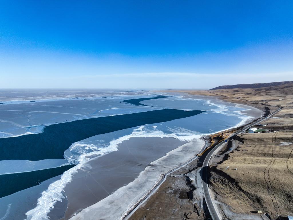 1月25日,青海省海南藏族自治州共和县境内的青海湖一角(无人机照片)。新华社记者 耿辉凰 摄
