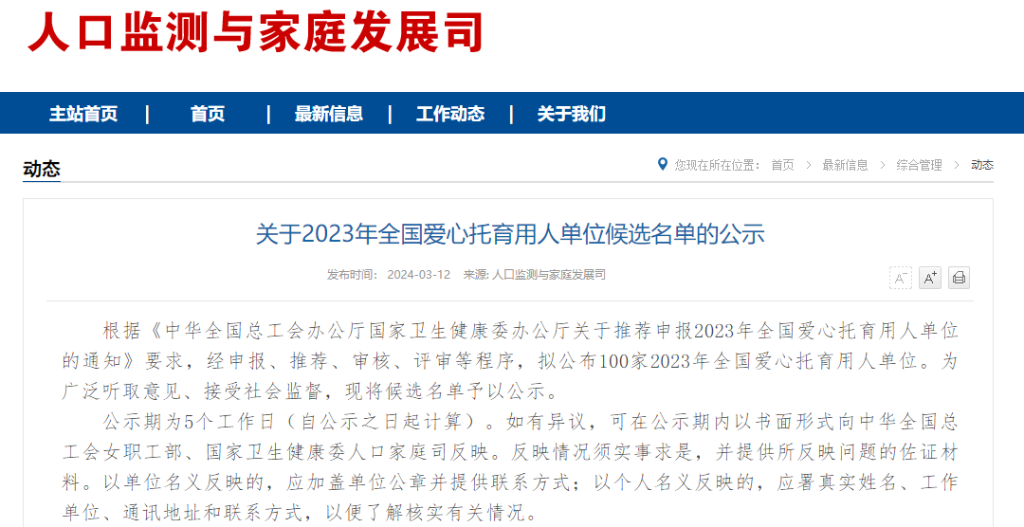 100家!2023年全国爱心托育用人单位候选名单公布