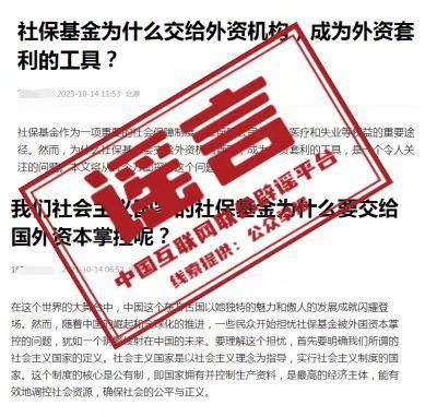 据“互联网联合辟谣平台”微信公众号消息,近段时间以来,有少数网络自媒体发布视频称,我国社会保险基金“几乎全部交给外资机构管理”,且被用于“买卖A股”,质疑社保基金成为“外资套利的工具”。经中国互联网联合辟谣平台向有关主管部门核实查证,前述言论均为不实信息。