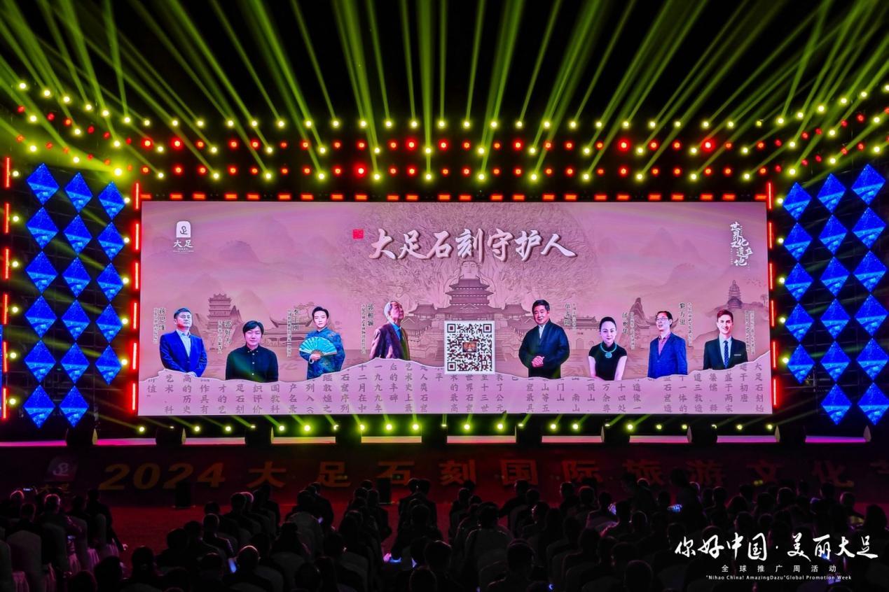 开幕现场,发布了“大足石刻守护人”全球招募计划公告:自2024年3月起,大足石刻面向全球招募 1007名“大足石刻守护人”,直至名额满员为止,共同守护世界文化遗产,传承中华文化。
