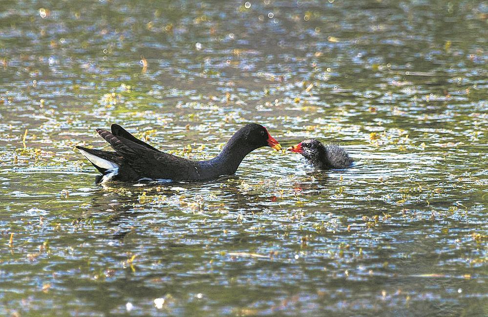 碧波荡漾的长流河河面上,两只红冠水鸡舞动着翅膀轻盈地掠过水面,其中体型较大的红冠水鸡仰着头,温柔地将嘴里的食物喂给身旁的幼雏……摄影爱好者杜巍轻轻按下快门,“咔嚓”一声,美好瞬间定格。