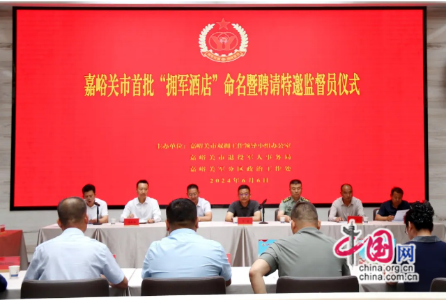 6月6日,甘肃省嘉峪关市双拥办联合市退役军人事务局、嘉峪关军分区政治工作处、市文旅局、市商务局等单位,举行全市首批“拥军惠军酒店”命名暨聘请退役军人事务特邀监督员仪式,现场与嘉峪明珠酒店等五家单位签约,颁发“拥军惠军酒店”牌匾。同时,为师永红等12名退役军人颁发退役军人事务特邀监督员证书,这是嘉峪关市开创社会化拥军新局面,不断释放惠军服务红利的又一创新举措。