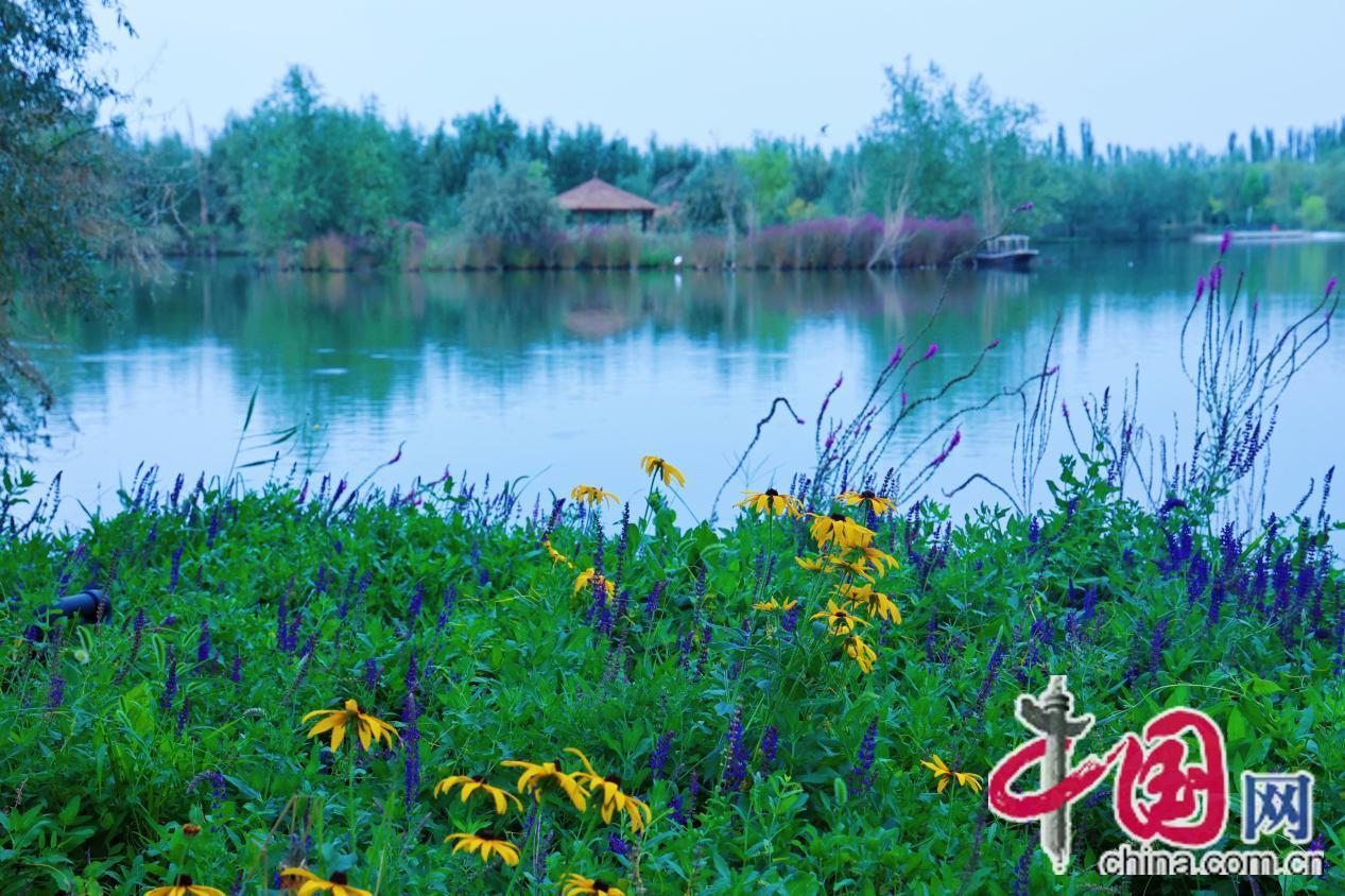 李文慧回忆道,公园改造前,周边遍布杂草及荒地,鱼塘设置着参差不齐的拦网,四周仅有少量的柳树及杨树,每到风沙季节,漫天的黄沙卷着砂石瞬间就将这里吞没,不仅影响了当地居民的正常生活,也不利于野生动植物的生长及栖息。