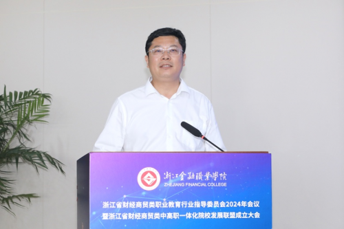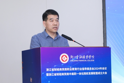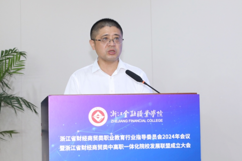 9月29日,浙江省财经商贸类职业教育行业指导委员会(以下简称行指委)2024年会议暨浙江省财经商贸类中高职一体化院校发展联盟(以下简称联盟)成立大会在浙江金融职业学院绍兴校区举行。浙江省商务厅党组成员、总经济师朱军,浙江省教育厅职成教处处长陈达等相关部门领导出席会议并讲话。浙江金融职业学院党委书记金杨华出席会议并致辞,校长陈荣达主持会议。