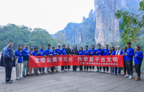宁波工程学院中外师生在鼎湖峰下合影