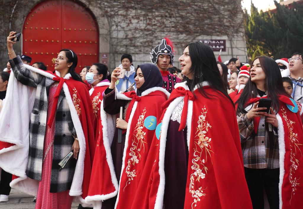 1月1日,一些外国游客在南昌滕王阁景区参观游览。新华社记者 万象 摄