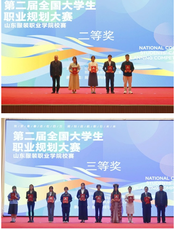 经过最终评审,第二届全国大学生职业规划大赛山东服装职业学院总决赛的获奖名单揭晓:在成长赛道中,山东服装职业学院服装工程与管理系蔡立佳荣获一等奖,财经系李怡婷和服装工程与管理系李璐获二等奖,信息工程系魏宇菲、服装设计与表演系苏俊如和薛慧言,以及艺术与设计系汪思远、李振芳、陈婷获三等奖;在就业赛道中,山东服装职业学院服装工程与管理系刘怡宏荣获一等奖,国际贸易系曹宝杰和信息工程系祖贞升获二等奖,财经系李心雨、服装设计与表演系戈范、艺术与设计系戚雅惠获三等奖。山东服装职业学院服装工程与管理系荣获优秀组织奖。
