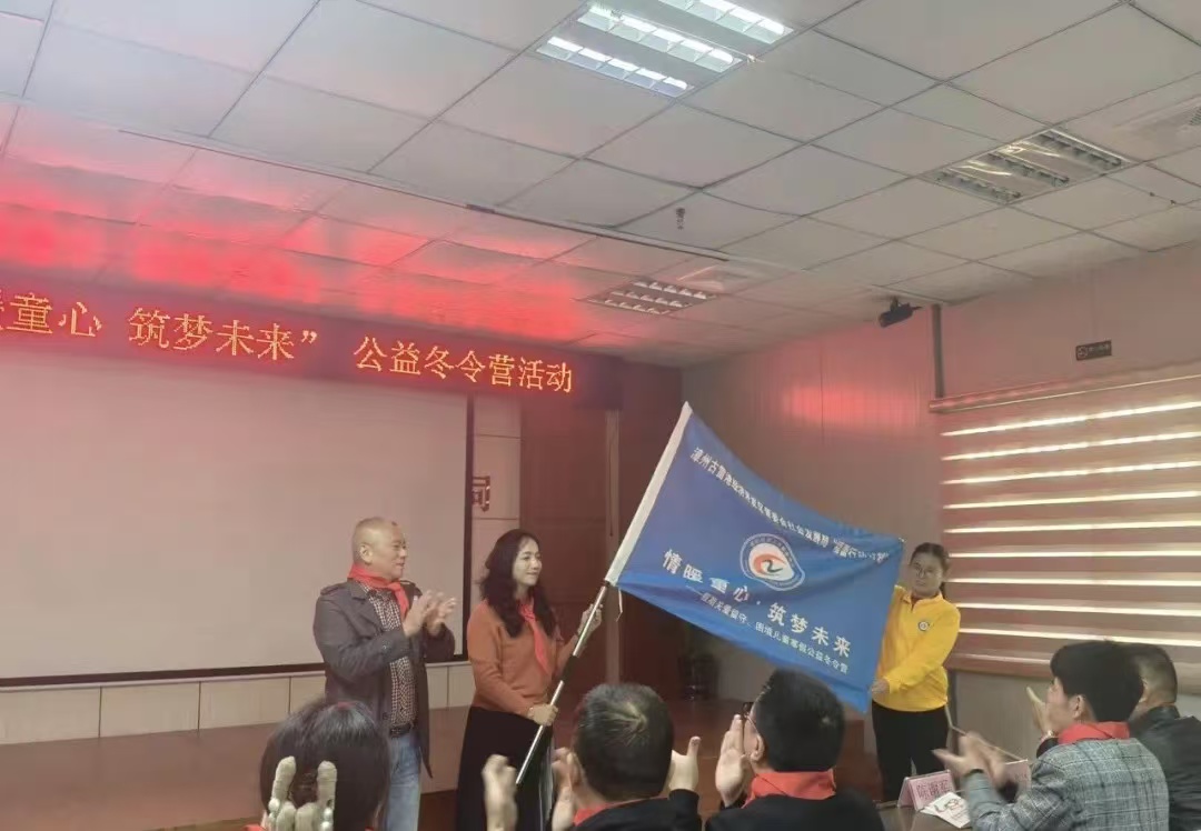 随后,陈副局长将代表着责任与使命的冬令营营旗授予诚志社工机构主任林素香女士。这不仅是一面旗帜的交接,更是一份责任与使命的传递,象征着本次冬令营正式启航,承载着无数期待与梦想扬帆前行。